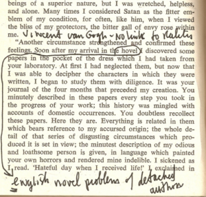 Mary Shelley’s version of ….. paper notes