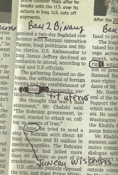 This news analysis report by Herb Zinser looks at some of the subset secret message codes embedded within the larger context of a news article