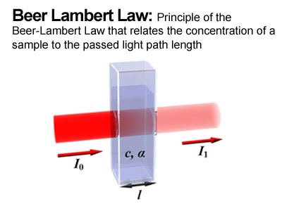 The Beer–Lambert law, also known as Beer’s law, the Lambert–Beer law, or the … of a material sample is directly proportional to its thickness (path length).