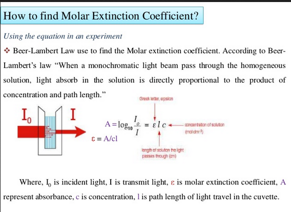 This page takes a brief look at the Beer–Lambert Law and explains the use of the terms absorbance and molar absorptivity relating to UV-visible absorption spectrometry. … For reasons to do with the form of the Beer–Lambert Law (below), the relationship between A (the absorbance) and ..