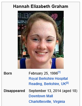 Hannah Elizabeth Graham (February 25, 1996 – c. September 13, 2014) was an 18-year-old second-year British American student at the University of Virginia ..