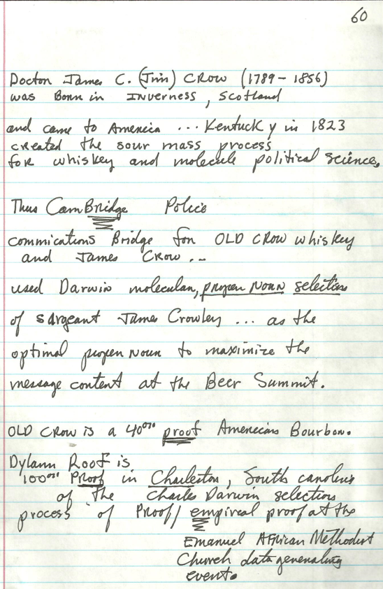 Information FABRIC data strings (Group 75) – the BEER SUMMIT inverted existence explained by James C. Crow whiskey code –> Wh + Is + Key –> White House information systems key